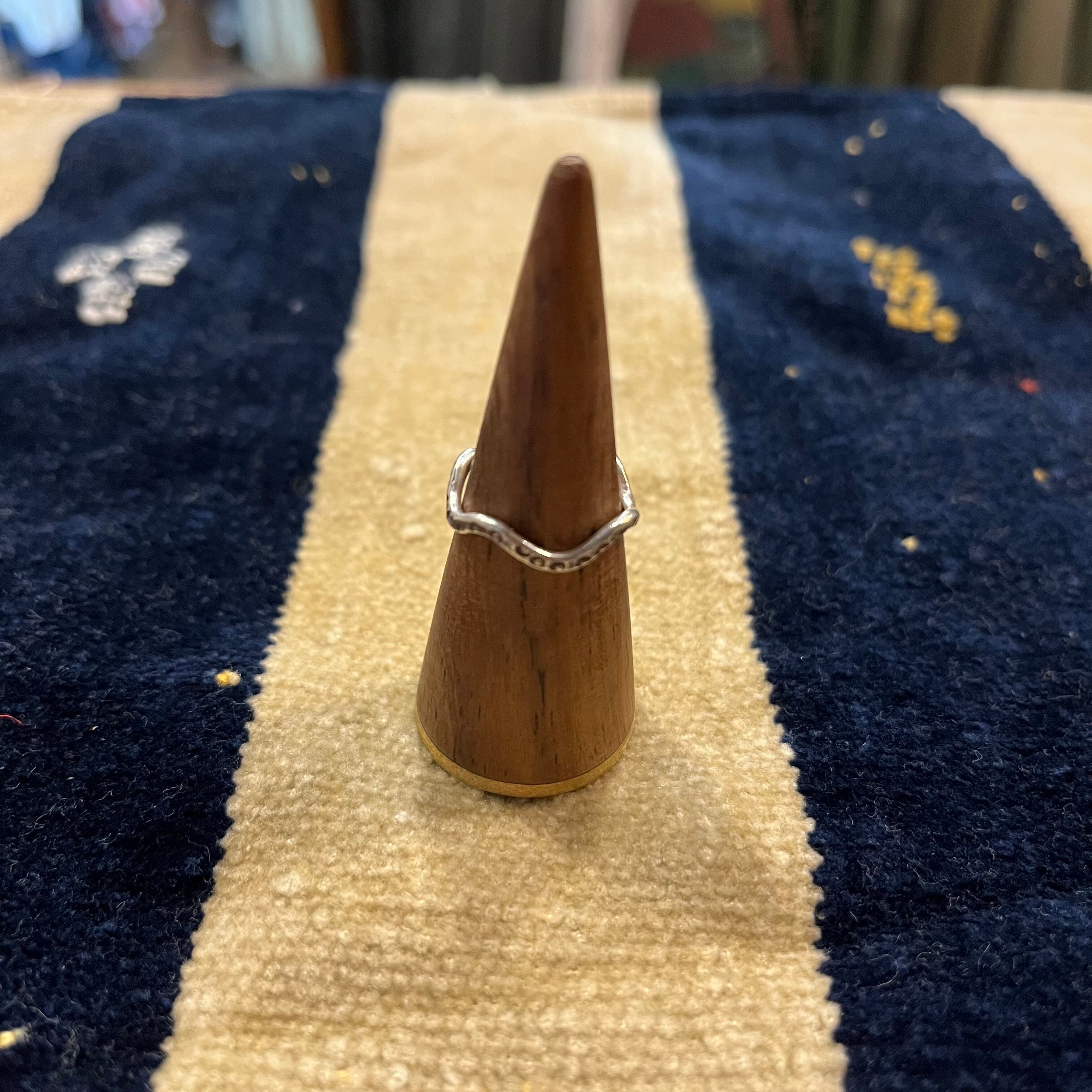 タイの山岳少数民族「カレン族」ハンドメイドのシルバーリングです。自然と共存するカレン族には自然を畏怖するとともに敬う「アニミズム」思想が流れており、モチーフや刻印には身近な動植物や生活に要する道具などを象ったものが数多くあります。