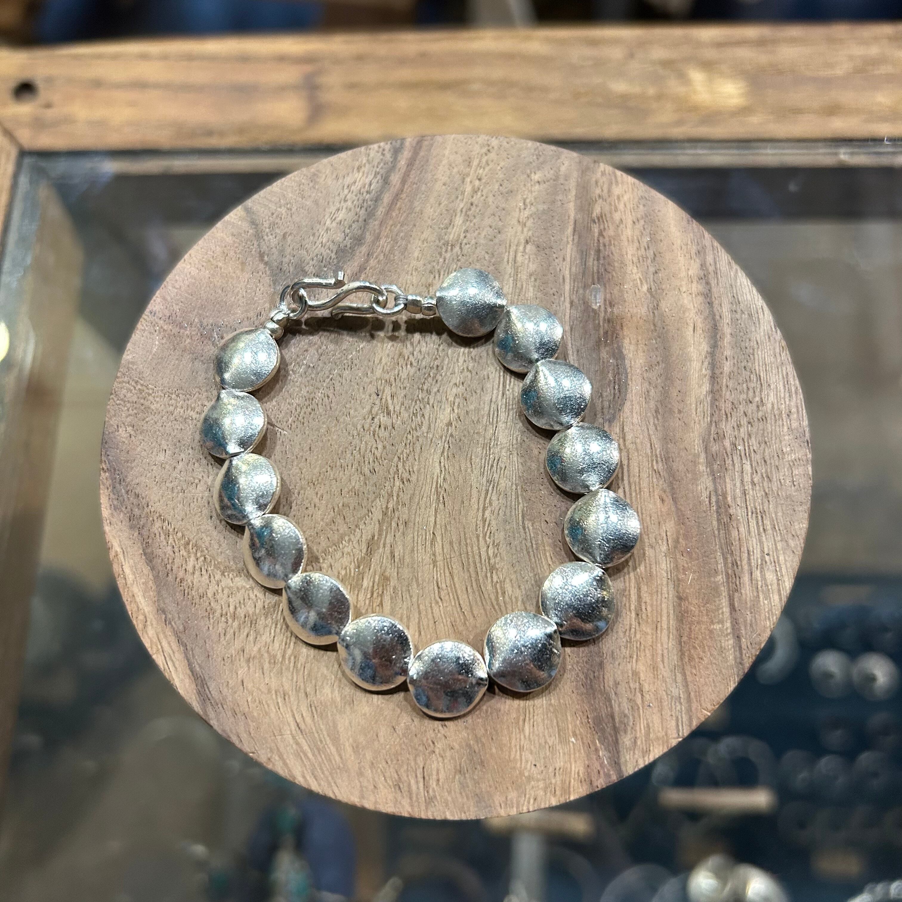 タイの山岳少数民族「カレン族」ハンドメイドのシルバーチェーンブレスレットです。自然と共存するカレン族には自然を畏怖するとともに敬う「アニミズム」思想が流れており、モチーフや刻印には身近な動植物や生活に要する道具などを象ったものが数多くあります。